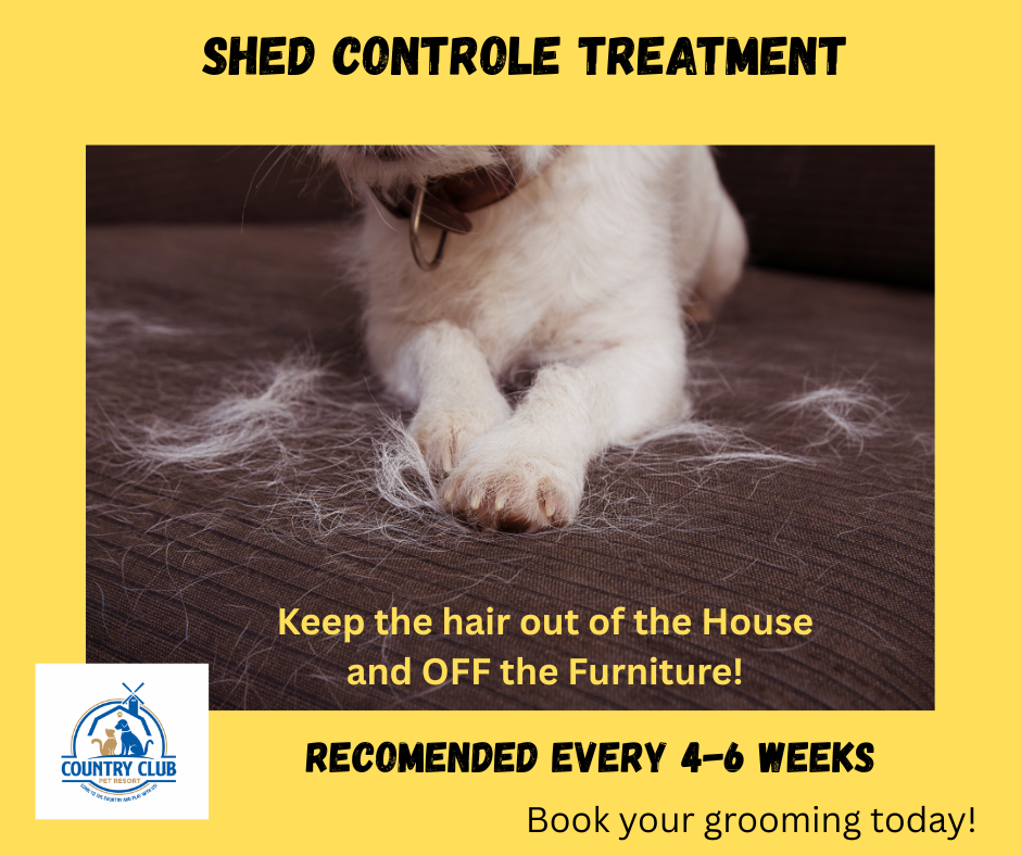 - Using premium de-shed shampoo and conditioner, face wash, we then blow out your pup's coat by hand to blast out the dead coat and deep brush with multiple grooming tools, to loosen and get off all that dry coat! Coat finish spray and gloss. Topping off with Perfume and a cute accessory. Keeps Hair out of the house and off the couch!
